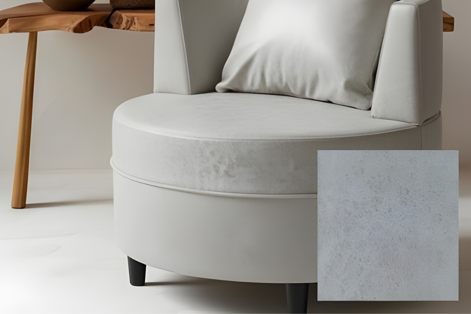 The Alba Sofà combines plastic feet, hardwood, and plywood for a sturdy build. Upholstered in white PU with a waterproof coating, it offers a sleek, modern look—ideal for contemporary spaces.